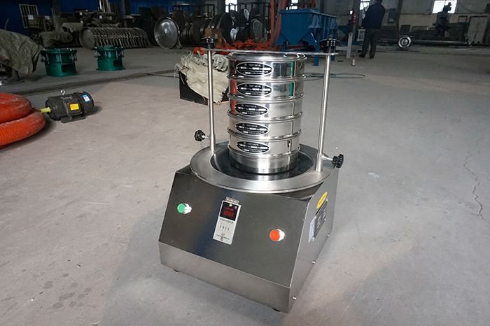 試驗篩機是以YZU立式振動電機作為整機振動源,通過振動電機帶動上部振動盤振動,再通過振動盤傳導(dǎo)至安放在振動盤上部Φ200篩框上,然后由需要檢測目數(shù)的篩框把小于篩網(wǎng)孔徑的物料顆粒篩分至下層篩框,如此層層篩選,使每層試驗篩內(nèi)只留相同粒度的物料,達到不同粒度的分離并確定此物料的粒度組成,使Φ200型篩框中的物料能非常有效的起到過濾、分級、篩分目的。
